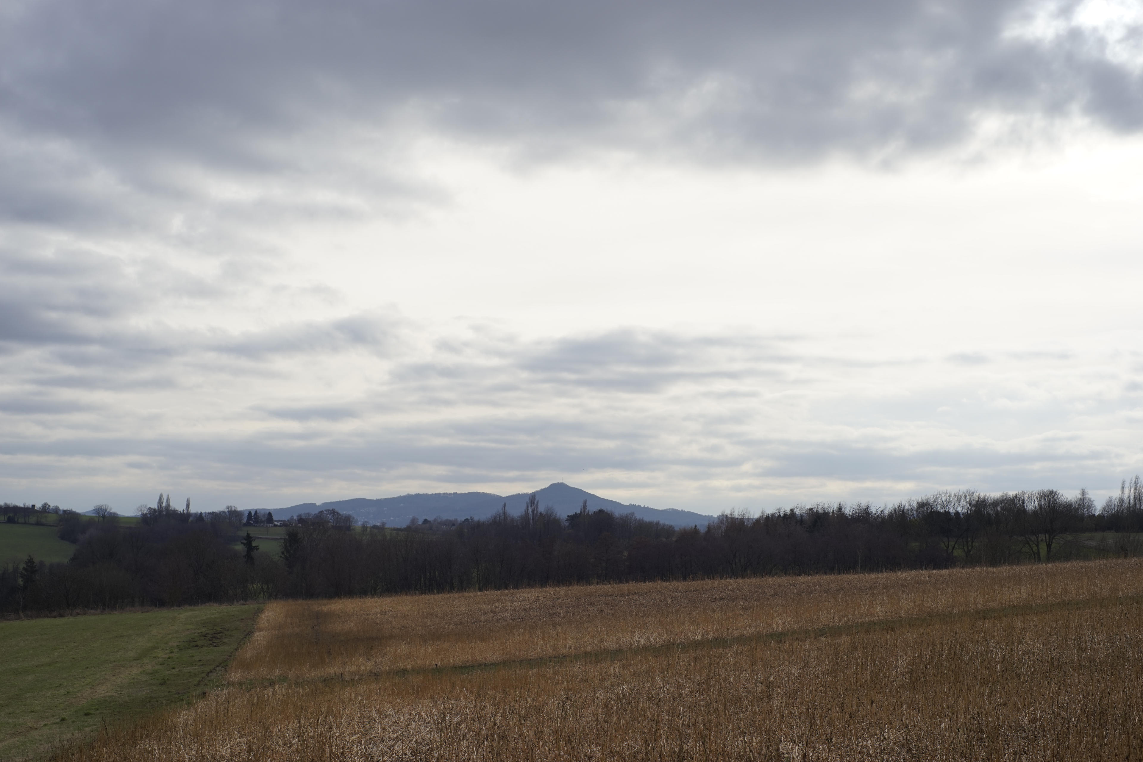 Am Sonntag waren wir spazieren, weil die Sonne geschienen hat. Haben wir uns gedacht, gehen wir doch hoch nach Söven, da ist es auch ganz schön. Zwei Dinge, mit denen wir nicht gerechnet haben: Der Wind hat geblasen wie bekloppt und die Wolken waren schneller. Dementsprechend hatte ich Glück, dass ich die dicke Jacke an hatte. Und eine Mütze. Und über der Mütze noch die Kapuze. Was für ein Sturm! (Der hat abends dann übrigens Schnee gebracht. Brrr!)