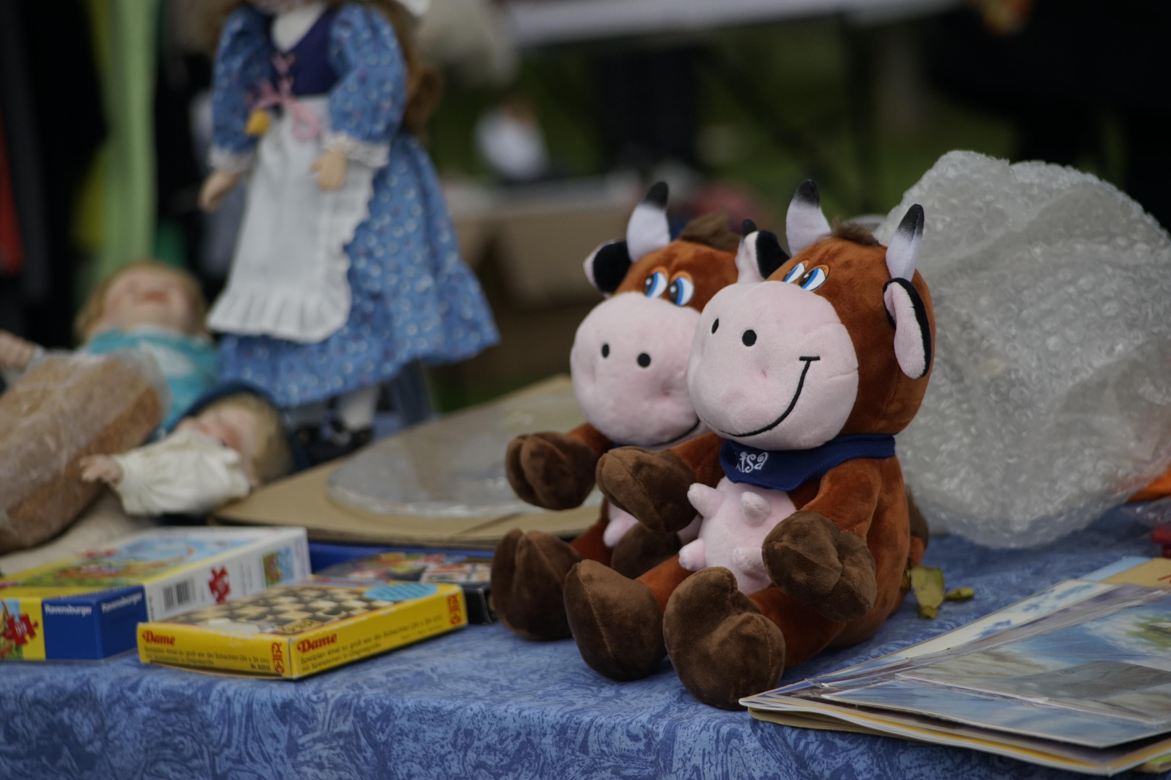 Am langen Ende bekommt man echt schon sehr cremiges Bokeh, wie man hier am nassen Sattel sehen kann. Die beiden (in meinem Kopf schwulen) Pinguine musste ich dann auch mal mitnehmen, die gucken mich ja schon länger aus dem Schaufenster an. (Wir gehen zu oft in Spielwarenläden, also einerseits im allgemeinen, aber auch speziell in diesen; die kennen uns mittlerweile wahrscheinlich schon von Weitem!