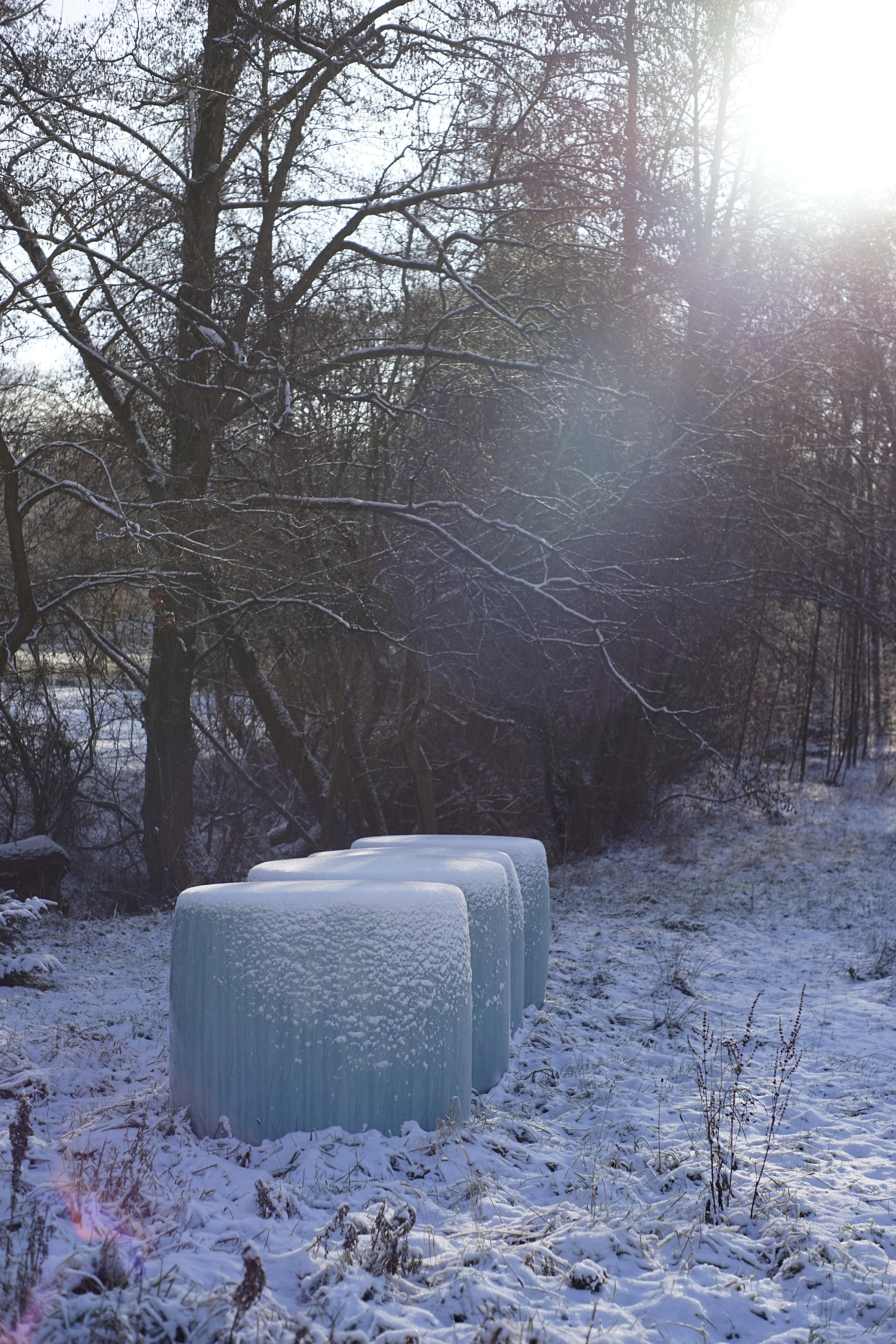 11.1.: Es war ein recht kalter Winter bisher. Von Mitte Dezember bis vor Kurzem lag ja sogar noch einigermaßen viel Schnee für die Gegend. Und nachts teilweise bis unter -10°C. Hatten wir länger nicht so anhaltend. An diesem 11. Januar, als ich mich dann auch mal wieder vor die Tür getraut habe, da das Foto-Wetter gut schien, war es in der Nacht davor so richtig schweinekalt gewesen. Soll heißen: Selbst als ich gegen Mittag bei strahlendem Sonnenschein mit der Alpha los gezogen bin, war der erste Akku innerhalb von ein paar Minuten erfroren. Zum Glück habe ich ja genug davon bekommen, als ich die Kamera übernommen habe! ;-)