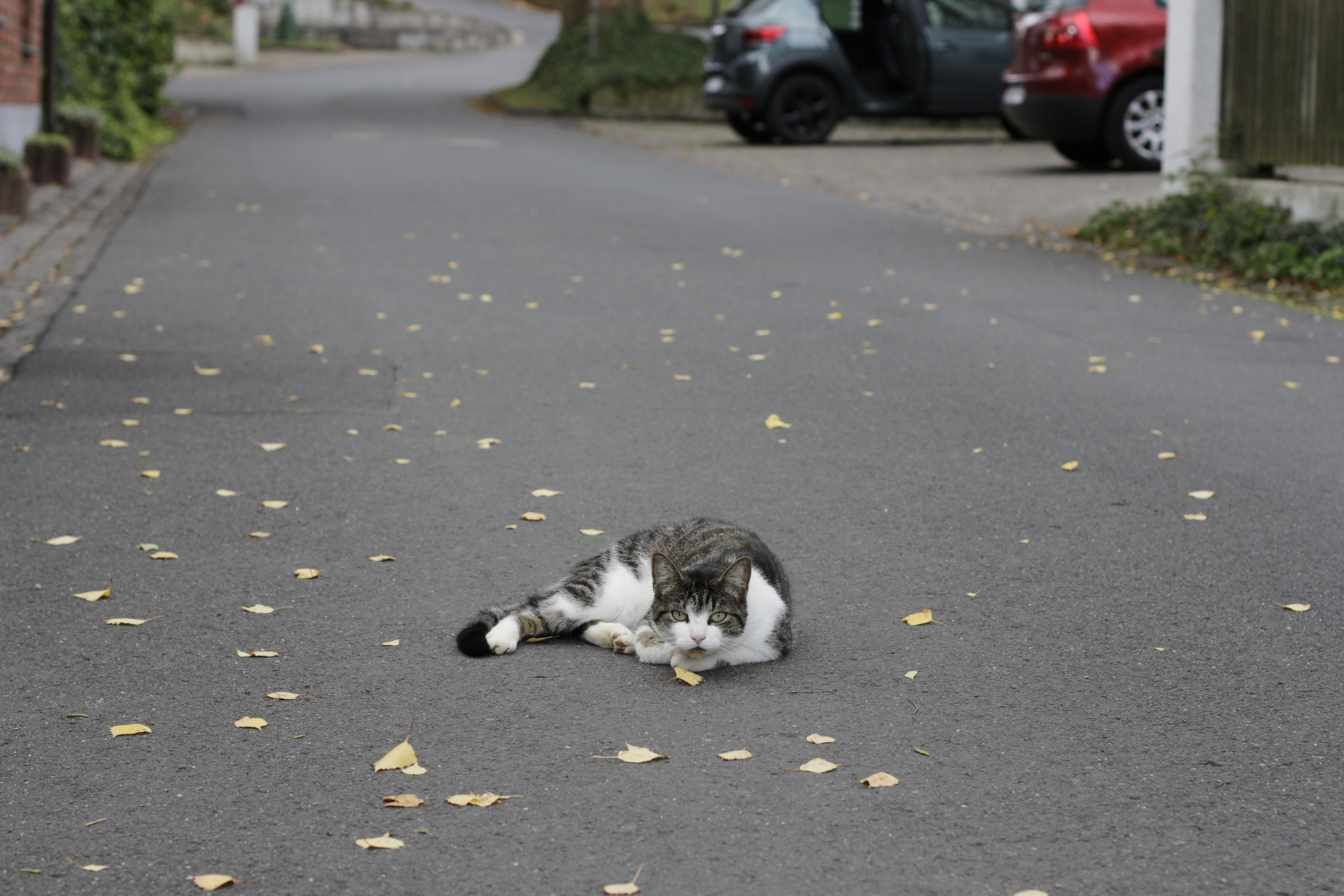 Jedenfalls ist es jetzt bald schon zwei Wochen her, dass ich mit dem Rad und der Canon Richtung Hennef aufgebrochen bin, um kurz vorher noch abzubiegen und doch in den Siegbogen zu gelangen. Hier kam ich den Berg runter geschossen und habe eine Moopsie-Mieze getroffen, die ich glaube ich noch nicht auf der SD-Karte hatte! Hübsche Katze. Auch wenn sie mich zuerst ein bisschen argwöhnisch begutachtet hat. Aber Katzen merken meist recht schnell, dass ich ihnen nichts tun will. Wenn man mal von einer ganzen Serie von Katzenfotos absieht! ;-)