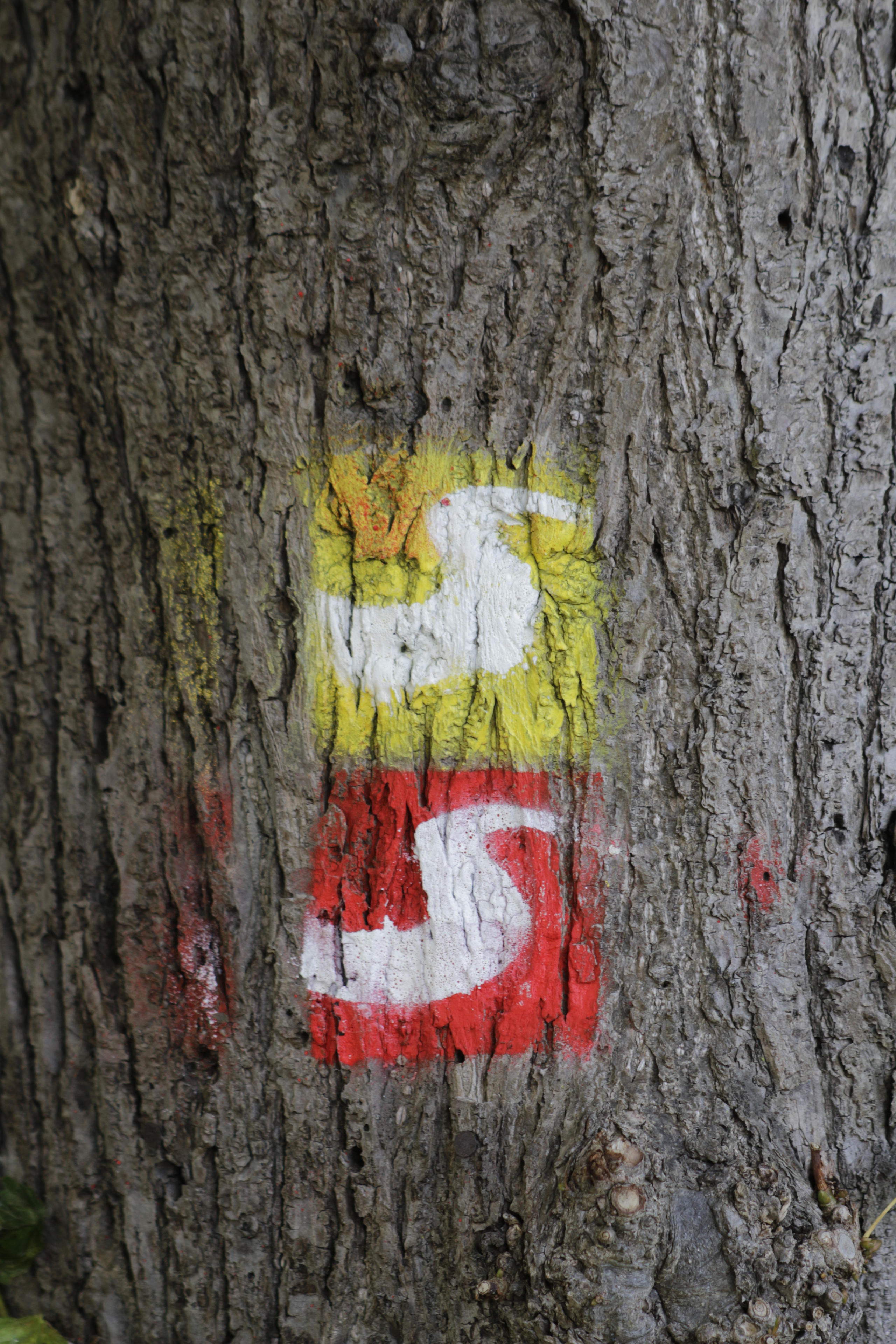 Dass da dieses vergilbte, ausgeblichene Schild mit dem "Rücksicht auf Wild" an einem der Bäume hängt, wusste ich auch noch nicht. Oder ich hab es wieder vergessen. Hab es dann auch mal mit genommen, dass ich das nicht wieder vergesse. Sagte er und hatte es schon fast wieder vergessen! :-D Witzig auch, dass die die recycelten Gitter ebenfalls falsch rum eingebaut haben: Die Schilder, die da noch dran sind, stehen alle auf dem Kopf. ;-)