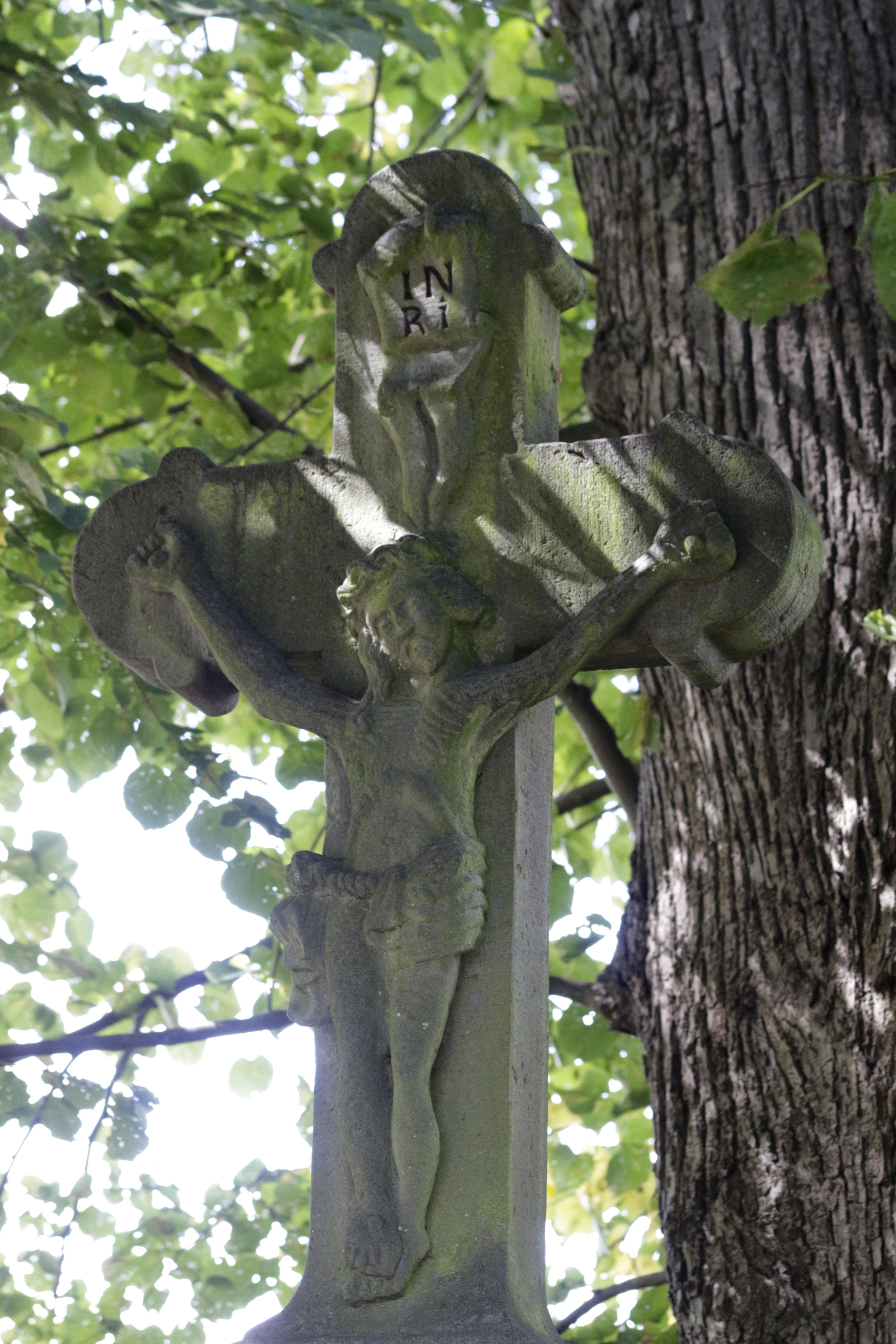 Dann erst wieder unten in Weldergoven angehalten, wo diese drei alten Holzkreuze an der Straße stehen. Die habe ich der Reihe nach dann auch mal mit genommen, ich glaube, die habe ich schon ganz lange nicht mehr ordentlich bearbeitet. (Mit der kleinen Canon ist das mit dem "ordentlich" allerdings so eine Sache. Könnte alles etwas schärfer sein, habe ich ja immer den Eindruck. Aber für die Fahrradtouren reicht es.)