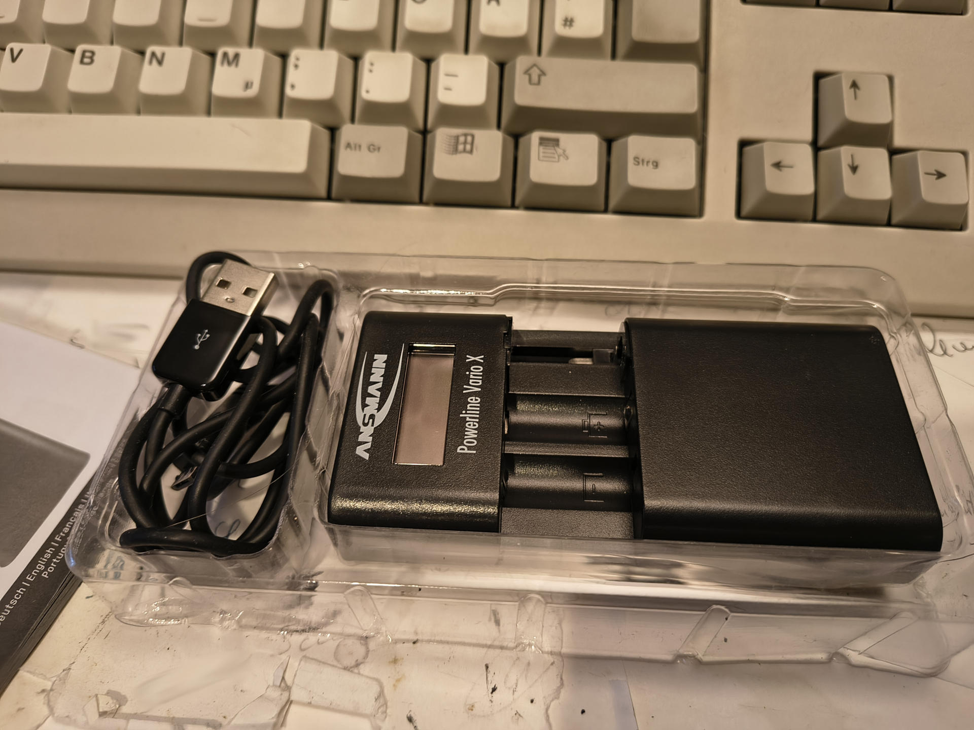 Ebay sei Dank, das bestellte universelle Ladegerät ist schon da! Das ging schnell, obwohl es nur die normale Post war. Und was ist es: Ein gebrauchtes Ansmann Powerline Vario X. Wenn das das Haus abbrennt, weiß ich wenigstens, an wen ich mich wenden muss, denn es hat eine deutsche Adresse im Booklet!