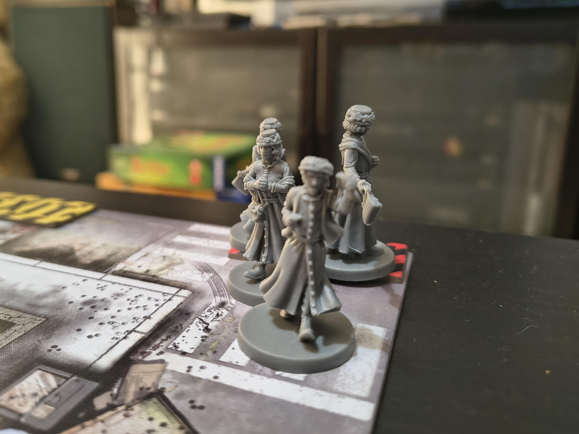 Fazit: Wer Zombicide mag und wer zudem noch in dieser Alterstufe existiert, dass er/sie/es damals noch den Flying Circus im Fernsehen gesehen hat, der kann hier eigentlich nichts falsch machen! Die Figuren der Überlebenden und der Python-Zombies sind in gewohnter Qualität und extrem detailliert - so sehr, dass ich teilweise Angst vor den Kloppen der Grannies hatte! Die schwingen ihre Handtaschen mit Backstein drin, da muss man sich echt in Acht nehmen. Gut, dafür haben die Silly Walkers mehrfach hintereinander eine 1 gewürfelt, sodass sie sich immer weiter in eine Sackgasse zurück gezogen haben. Wir hatten jedenfalls extremen Spaß! Gut gemacht! Ach ja, nur die Musical Mice haben wir die ganze Zeit vergessen auszulegen! Wobei die doch so hilfreich sein können! ;-) ("SQUEEK!")