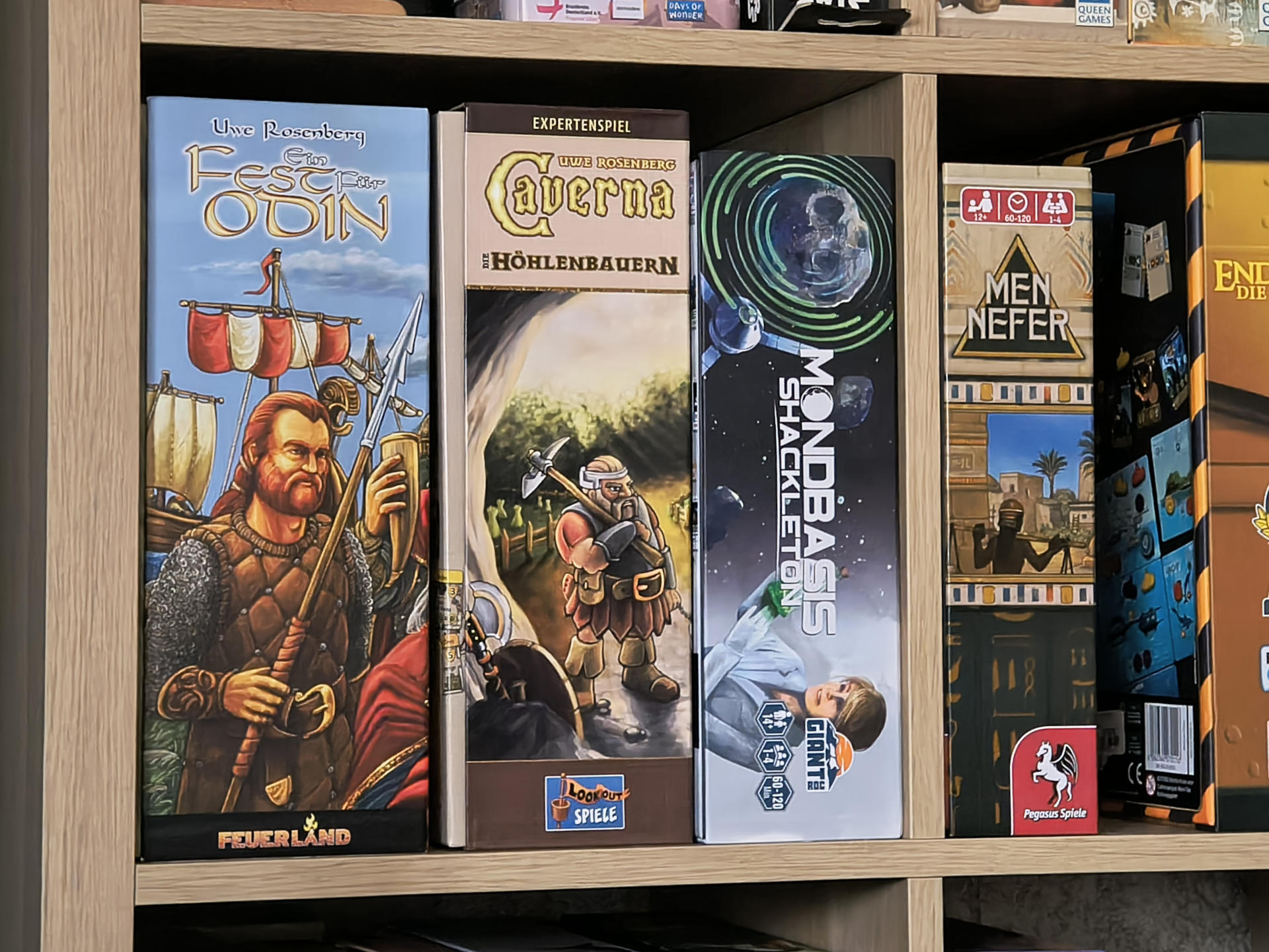 Wir haben ja einen Hang zu komplizierten Brettspielen epischen Ausmaßes. Siehe erstes Foto, und das ist nur eine kleine Auswahl. Deswegen haben wir, als es günstig im Laden stand, Caverna - Die Höhlenbauer mit genommen. Wie man auf der Kiste schon lesen kann: "Expaertenspiel", "Uwe Rosenberg". Der olle Ösi hat wieder ein Spiel hin gelegt, da schlackern die meisten nur mit den Ohren. Wenn man schon wieder eine 20+ Seiten Betriebsanleitung braucht, ja dann, dann weiß man, dass man ein wahres Monster in den Händen hält.