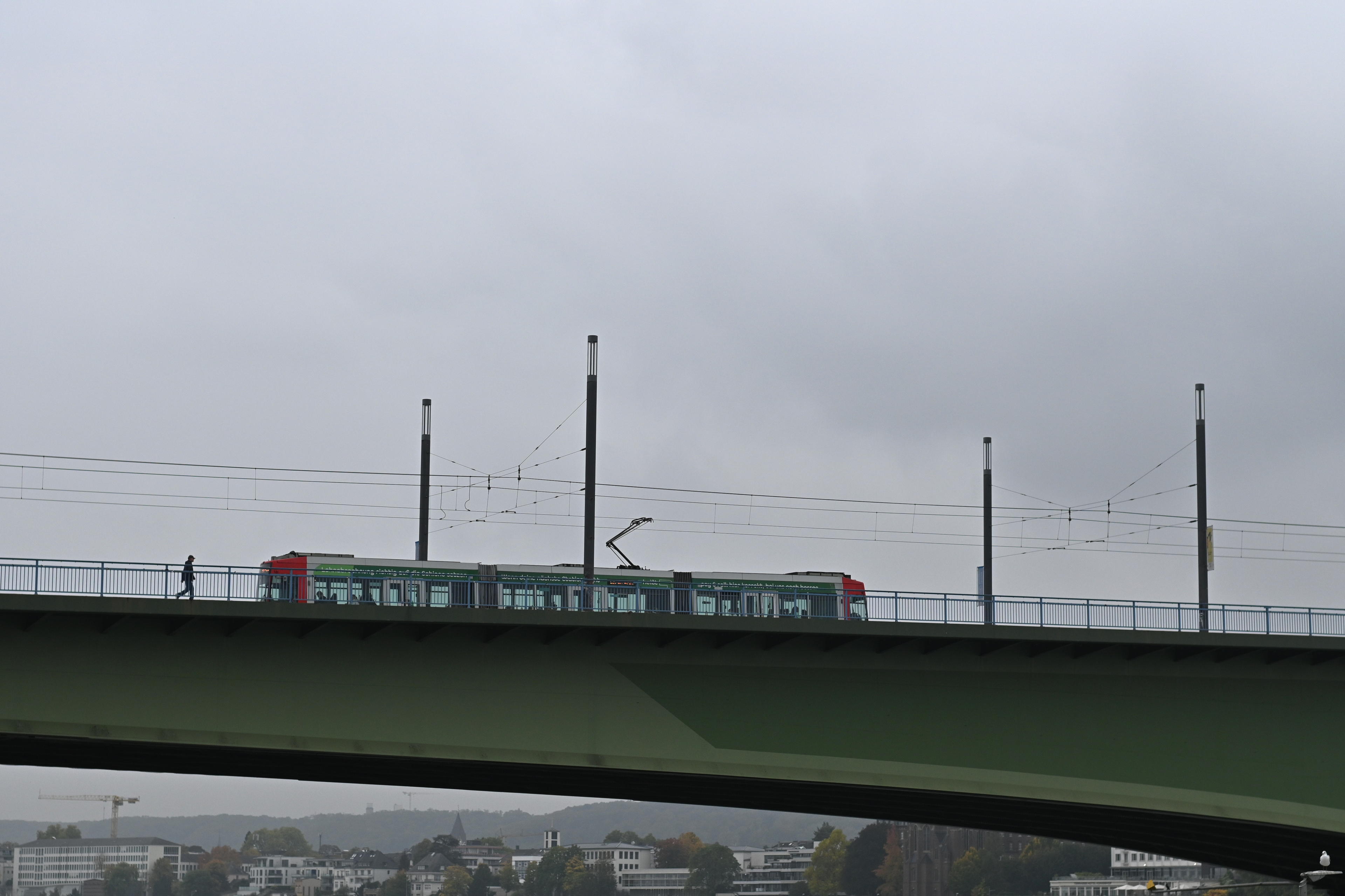 Heute war Trekdinner und eigentlich wollte ich mal wieder meine Nikon D800 mitnehmen, weil die sich so schrecklich langweilt: Da sind sämtliche Akkus leer! Alle! Also, der in der Kamera, die AA-Akkus im Griff, die Ersatzakkus wollten auch nicht, und der alte aus der D610 war auch mittlerweile leer, weil seit zwei Jahren unbenutzt! Sowas! Da habe ich mir die Z fc gegriffen, den Z-to-F-Adaper drauf genagelt und mein 50/1.8 daran angebracht. Ist sowieso eine ziemlich coole Kombination. Damit dann nach Bonn, wie immer diesseits des Rheins geparkt und zack, über die Brücke gerannt.
