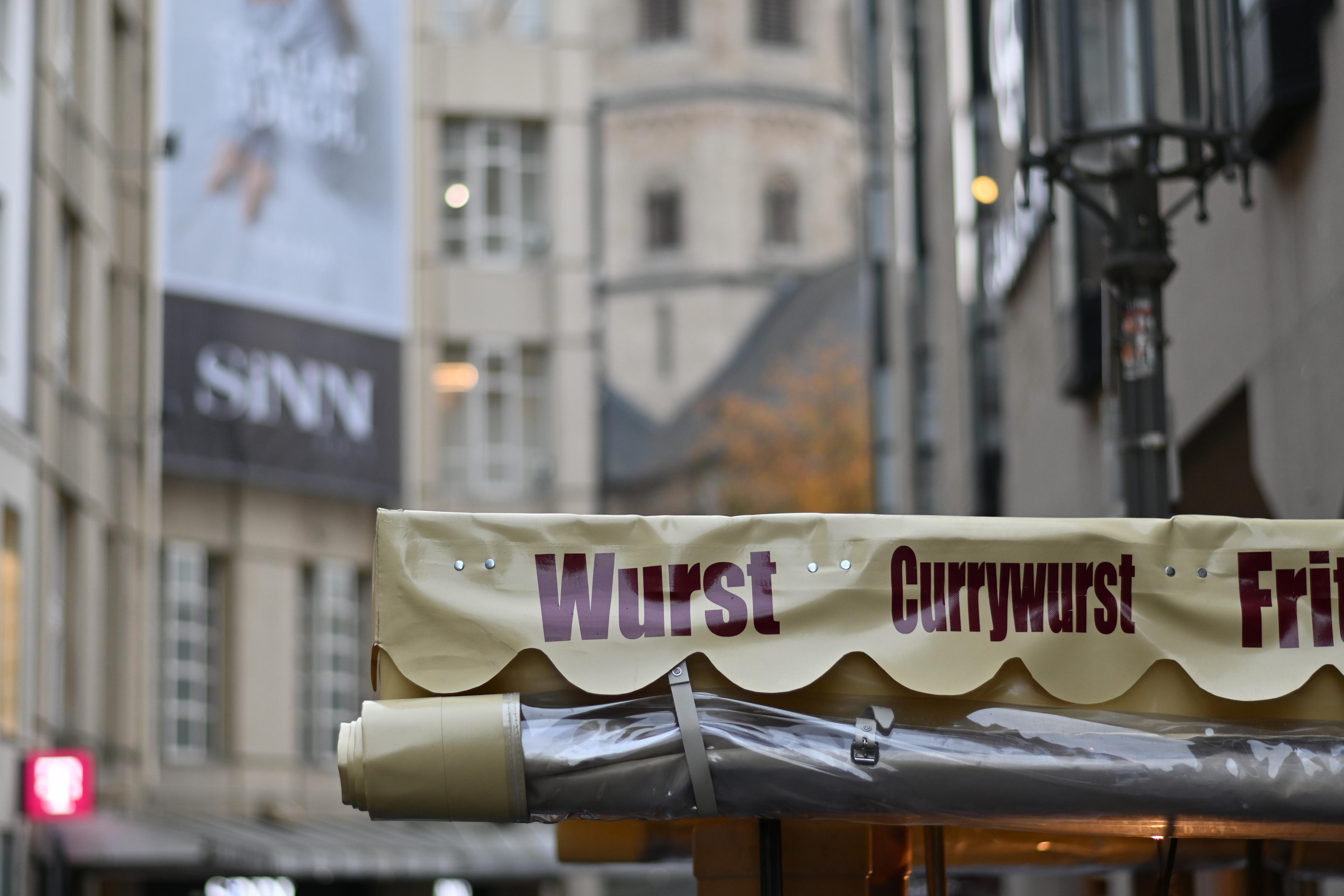 Vorm Thalia stand dann noch so ein kleiner Elefantenschuh rum. Das Kind muss aber wirklich noch sehr jung gewesen sein. Hingegen war das Buch, das da auf diesen Schaukästen lag, war schon etwas älter: Die dunkle Seite des Mondes. Dazu fällt mir ja eigentlich als erstes Pink Floyd ein. Und auf dem Weg zum Münster gab es noch Würste, ganz wichtig. Wir hatten uns allerdings bereits im Buchladen mit etwas schwerem eingedeckt: Schon wieder ein neues Spiel! Eins, auf dessen Rücken schon wieder was von 115 Minuten stand. Wird also wieder ein halber Tag, bis wir das verstanden haben. (Scyth, jedenfalls. Mal sehen.)