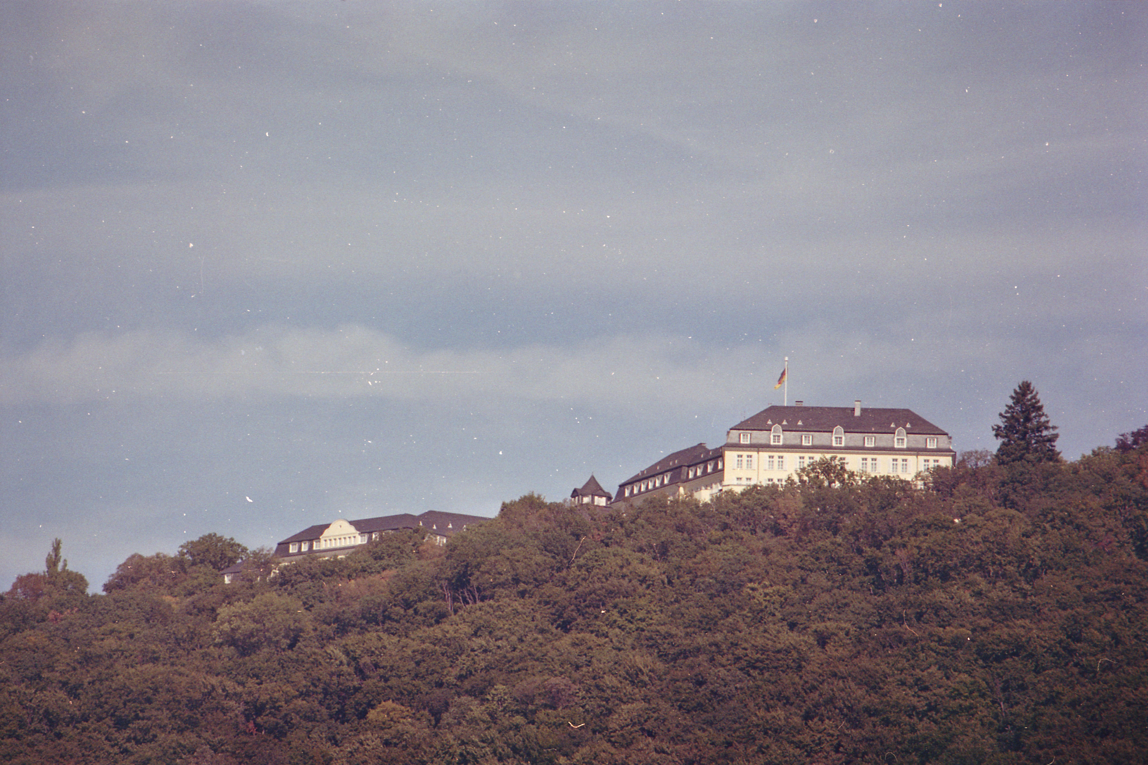 Nettes Bild, jedenfalls, mit dem Gästehaus auf dem Petersberg im Hintergrund. Da sind wir auch schon lange nicht mehr oben gewesen. Früher sind wir da auch immer noch mal ausgestiegen, wenn wir vom Drachenfels kamen. Aber irgendwie sind wir nicht mehr in Übung, dafür tun einem die Füße einfach zu sehr weh, wenn wir hier vorbei kommen. Dabei sind wir doch schon den kurzen Weg zur Ruine hoch gelaufen!