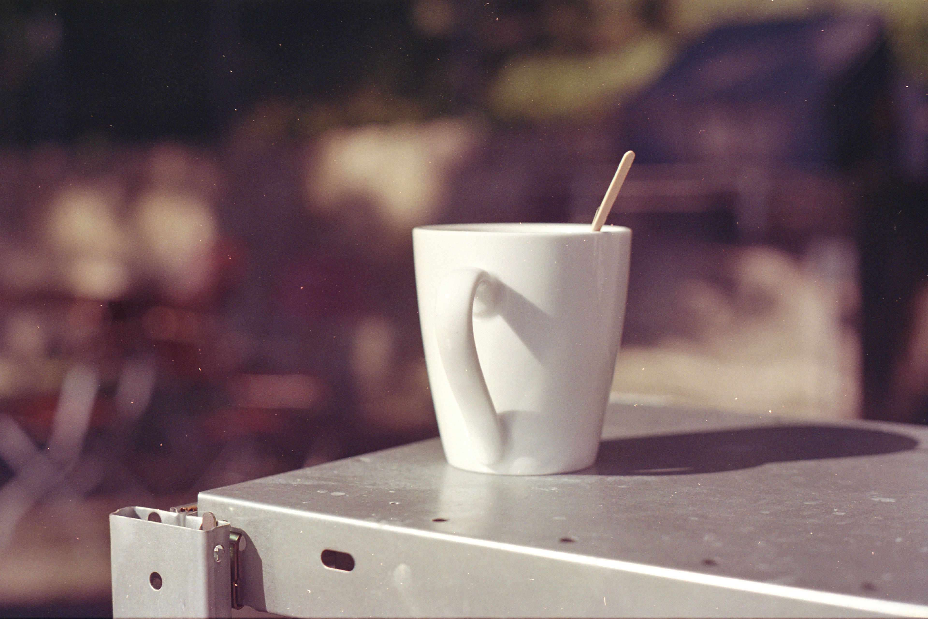 Wenn ich abgestellte Trinkgefäße sehe, muss ich sie fotografieren; Tassen machen da keine Ausnahme. (55mm, 1/1000s, f/4.) Im Gegensatz zu den abgelaufenen Filmen war es hier geradezu eine Erholung, den Weißpunkt zu finden!