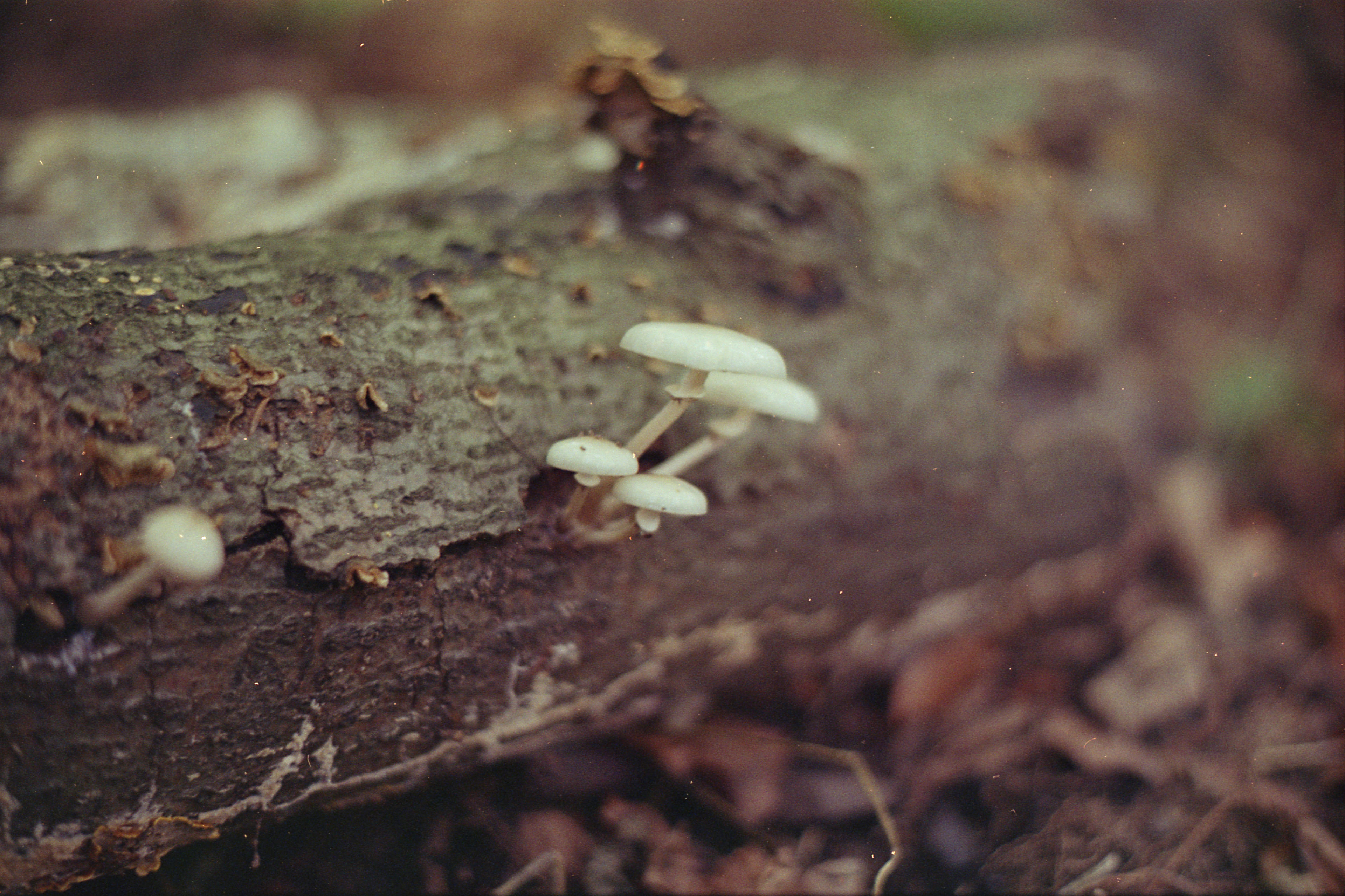 Im schattigen Wald habe ich dann mal die Blende ganz geöffnet - damit wir das auch einmal auf dem Film zu sehen bekommen - und habe die Pilze am abgefallenen Ast fotografiert. (55mm, 1/15s, f/1,7.) Immer wieder erstaunlich, wie dunkel das in einem solchen Wald tatsächlich ist. Ich mein, ISO 200 ist jetzt nicht der schnellste Film, aber dafür reichte es schon wieder nicht mehr aus. Ich bin erstaunt, dass ich das nicht verwackelt habe, so verknickt ich da auf dem Boden gehangen habe. Erklärt auch, weshalb ich den Fokuspunkt ein wenig zu weit vorne gesetzt habe. Einen halben Zentimeter oder zwei nach hinten! Naja, aber bei der Blende ist das gerade auf diese minimale Entfernung nicht einfach.