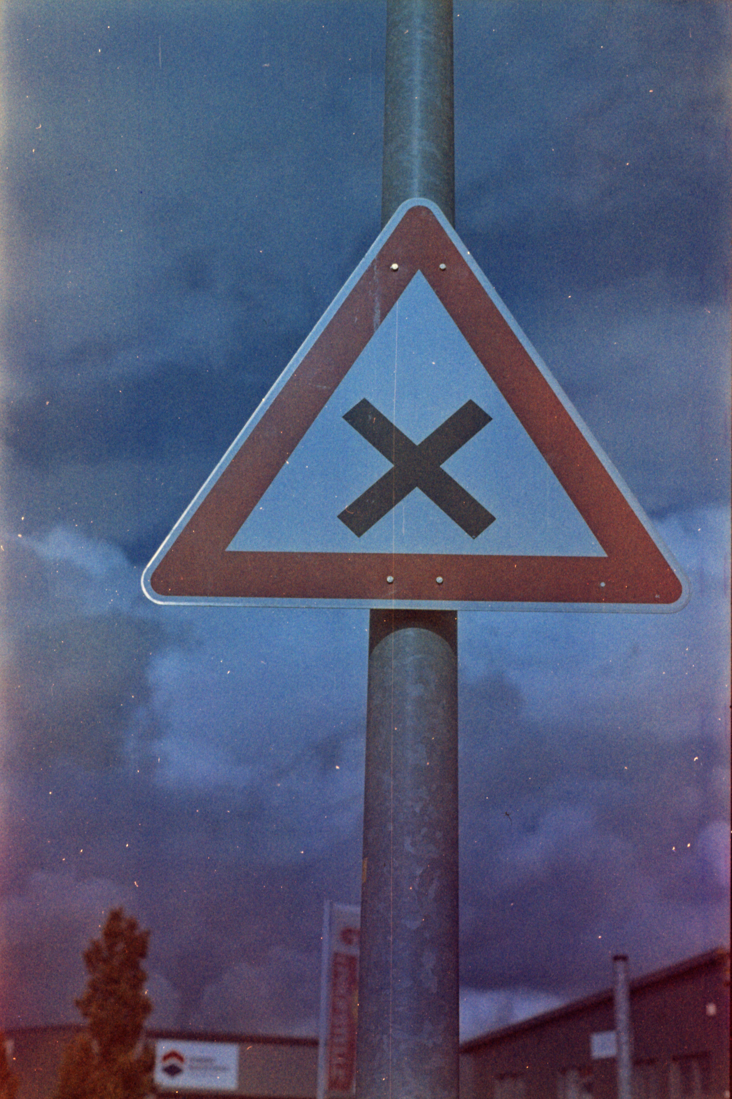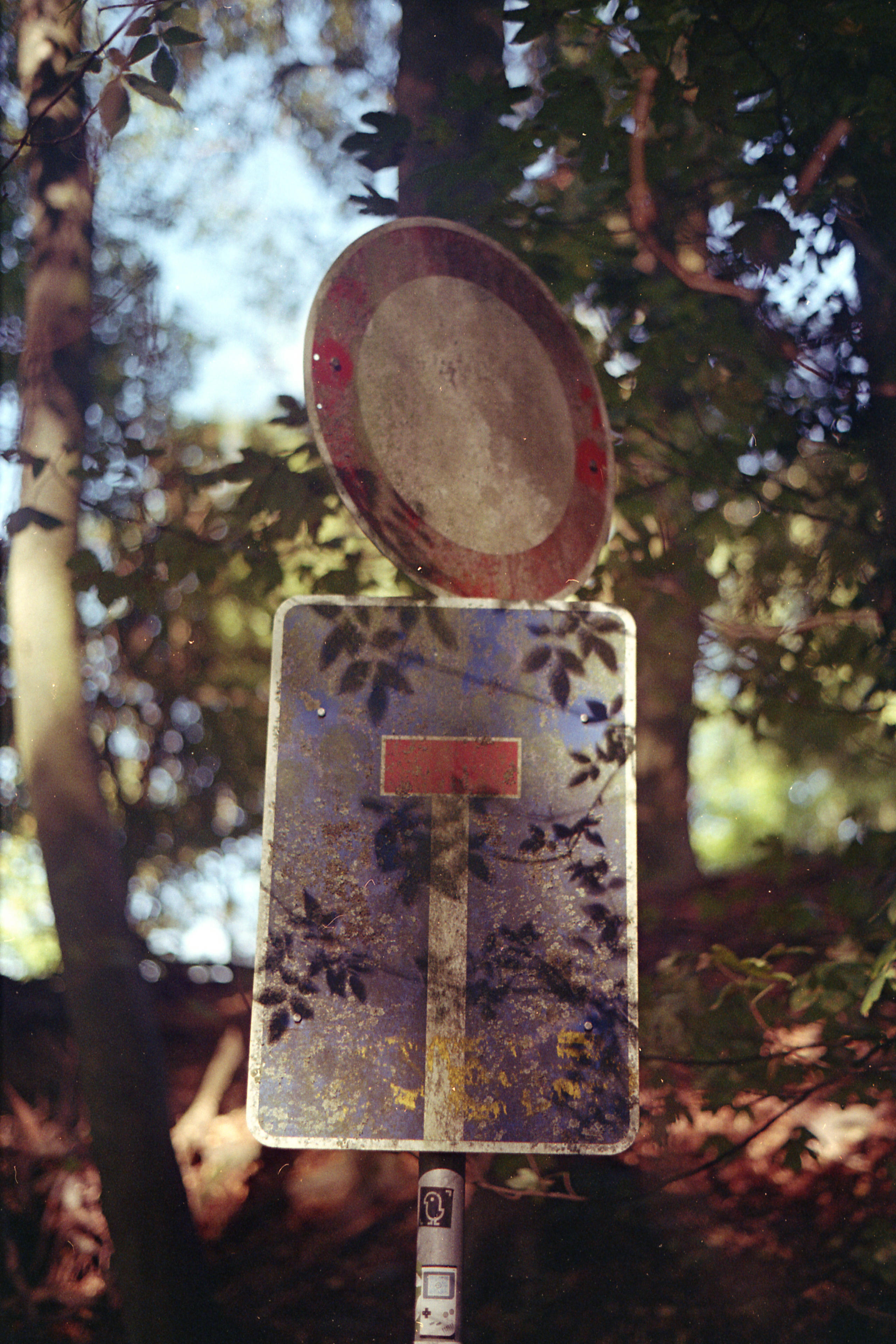 Gegen Ende zeichnete sich ab, dass ich noch ein paar Bilder auf dem Film haben würde, die ich gerne noch verschwendet haben wollte, um ihn dann auch zügig entwickeln zu können. Deswegen hat sich mal wieder ein weit offenes Verkehrsschild dazwischen gemogelt! (55mm, 1/250s, f/1,7.) Ich finds aber aber auch sehr seltsam, dass hier wirklich mitten im Wald ein Sackgassen-Schild steht. Was macht das hier? Vor allem, der Weg an dem das steht, das ist ein besserer Fußpfad. Da fährt man nicht mal mit 'nem fetten SUV rauf! Aber was weiß ich schon, es hat wohl offenbar mal wer versucht und hatte sich dann im Naturschutzgebiet festgefahren. Anders kann ich mir die Anwesenheit dieses Schildes nicht erklären!