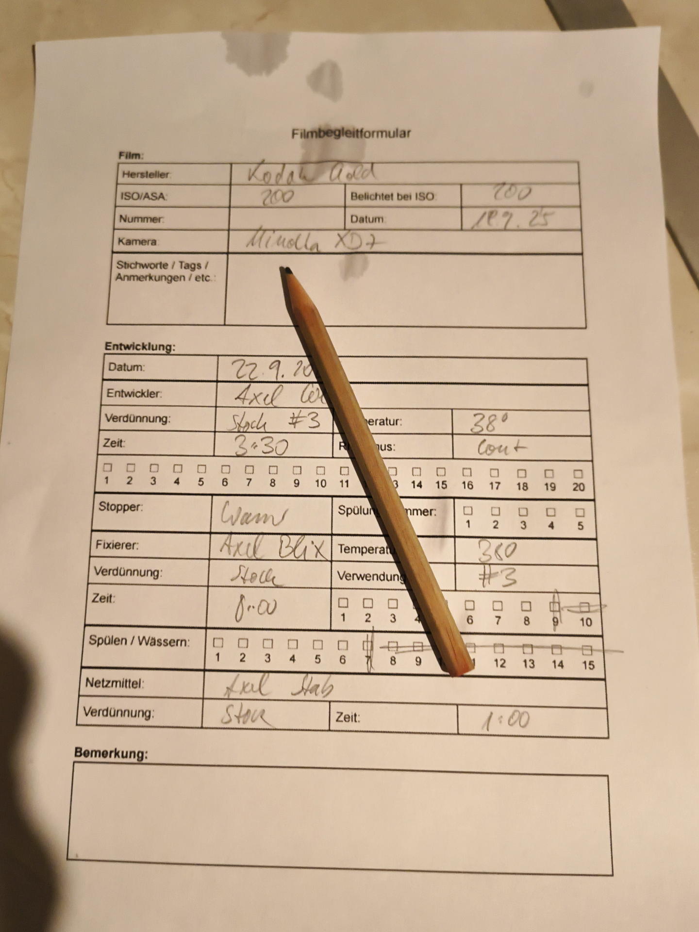 - Entwicklung: Axel Color Newbie C41 Kit