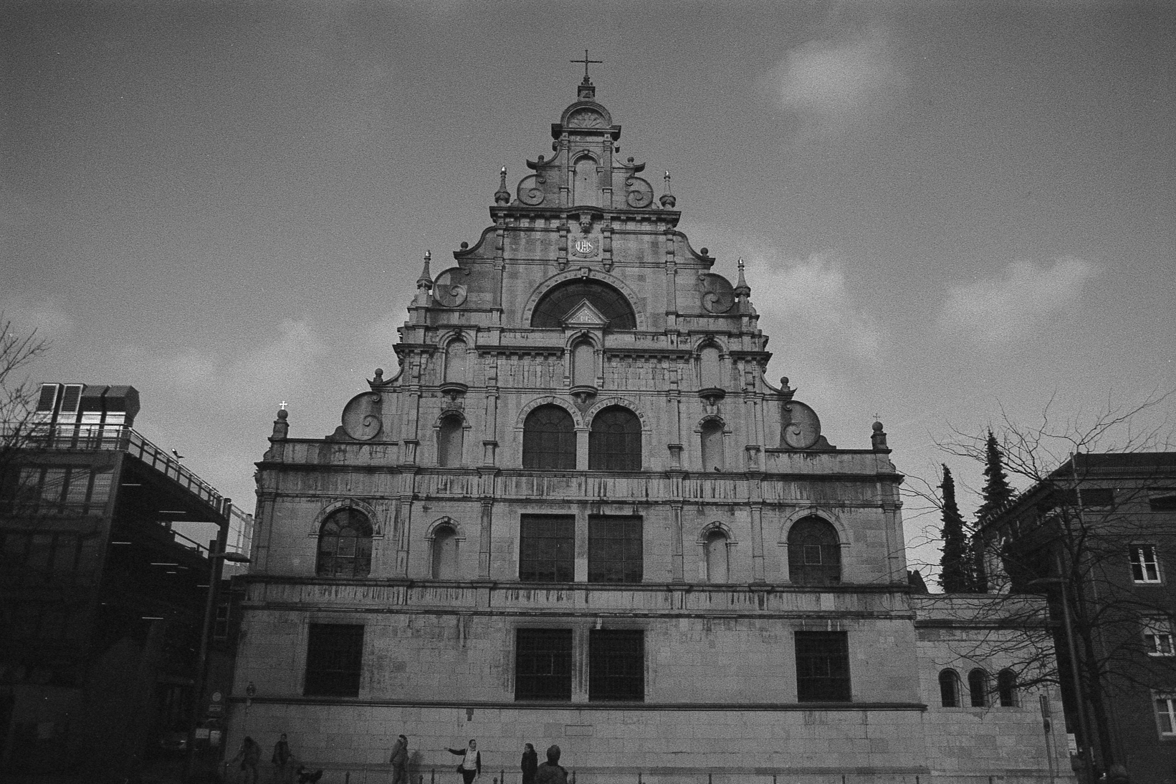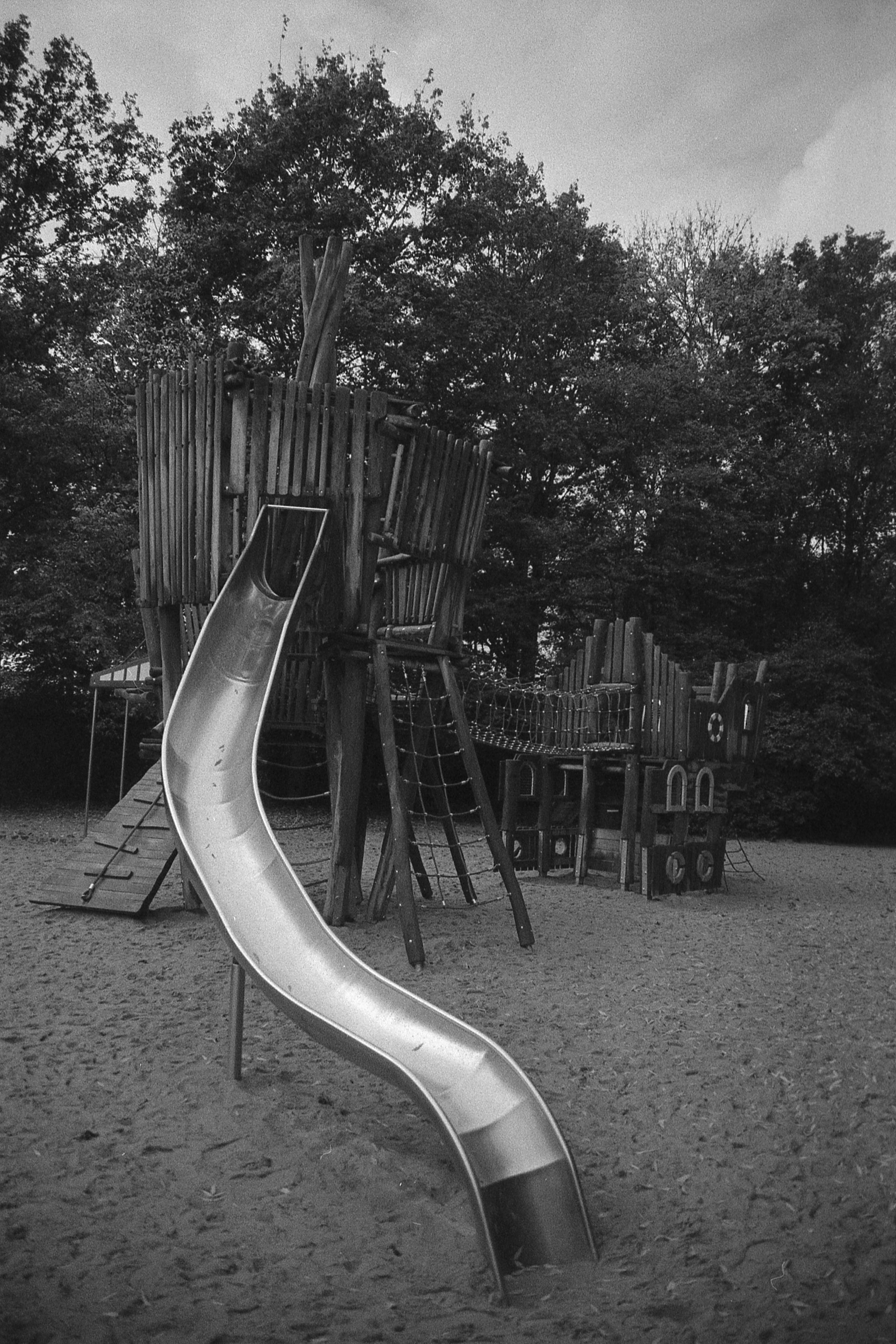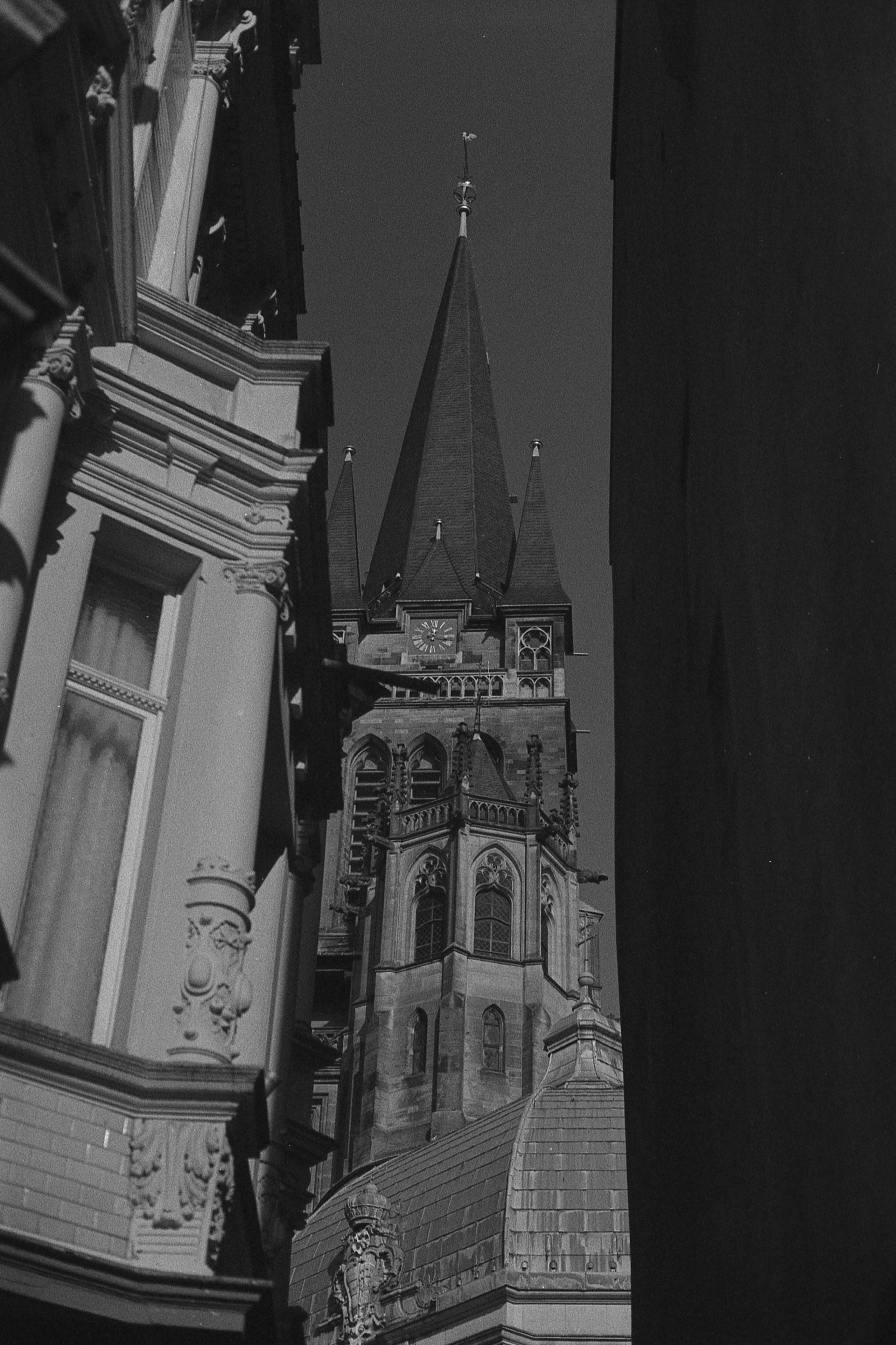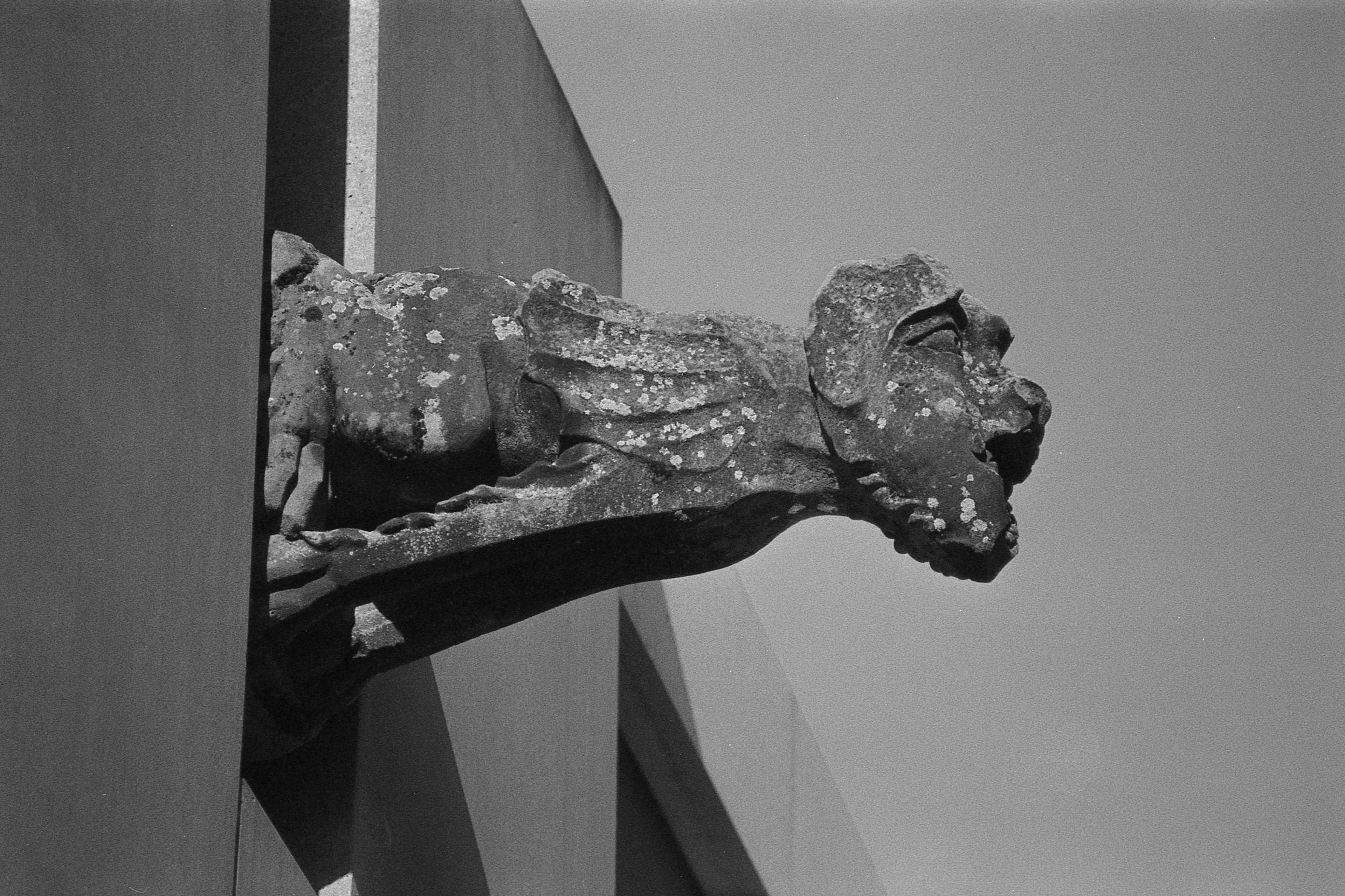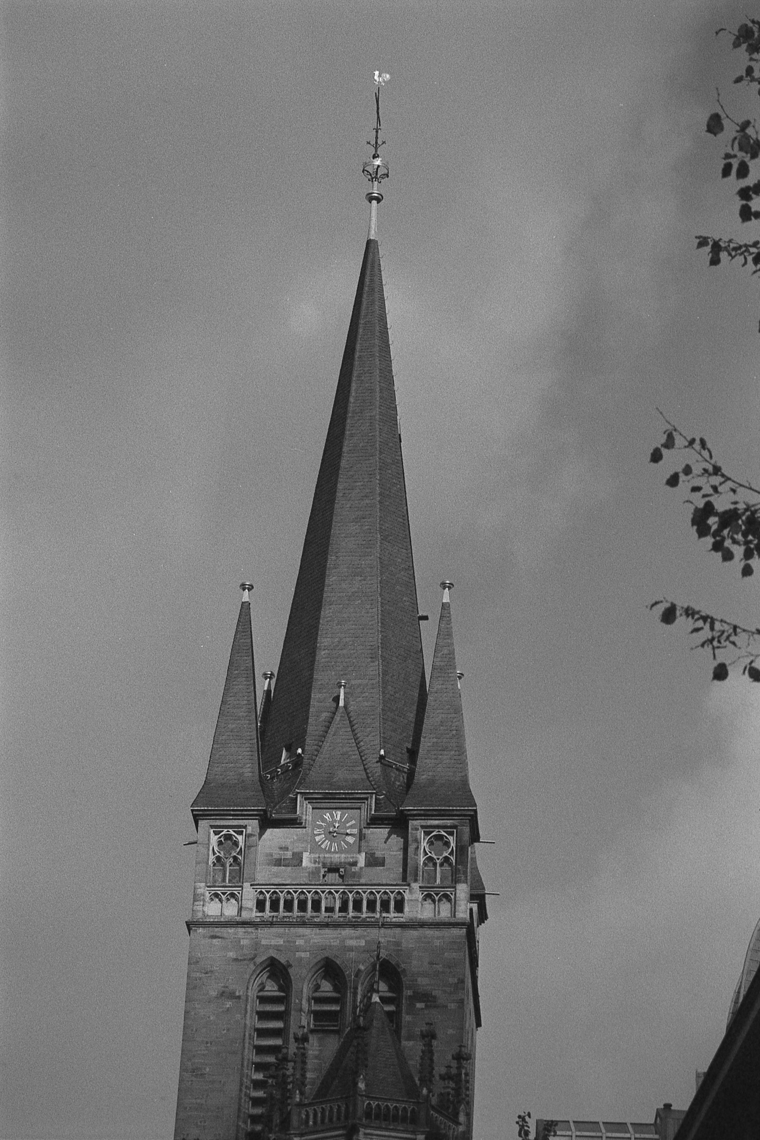Ich kann mich nicht mehr genau erinnern, was bei dem Bild mit der Laterne schief gelaufen ist, aber das ist irgendwie nur noch quadratisch brauchbar. Hatte ich da den Film nicht weit genug gedreht? Dann müsste da aber irgendwo ein Restbild von Doppelbelichtung auf einem der anderen sein. Ist es aber nicht. Oder habe ich die nicht in der richtigen Reihenfolge gescannt? Das könnte sein, das ist bestimmt das erste oder das letzte auf dem Film und die Hälfte ist im Klebestreifen des Papierrückens verschwunden. (So sieht das jedenfalls auf meinem unbearbeiteten Originalscan aus.) Keine Ahnung.