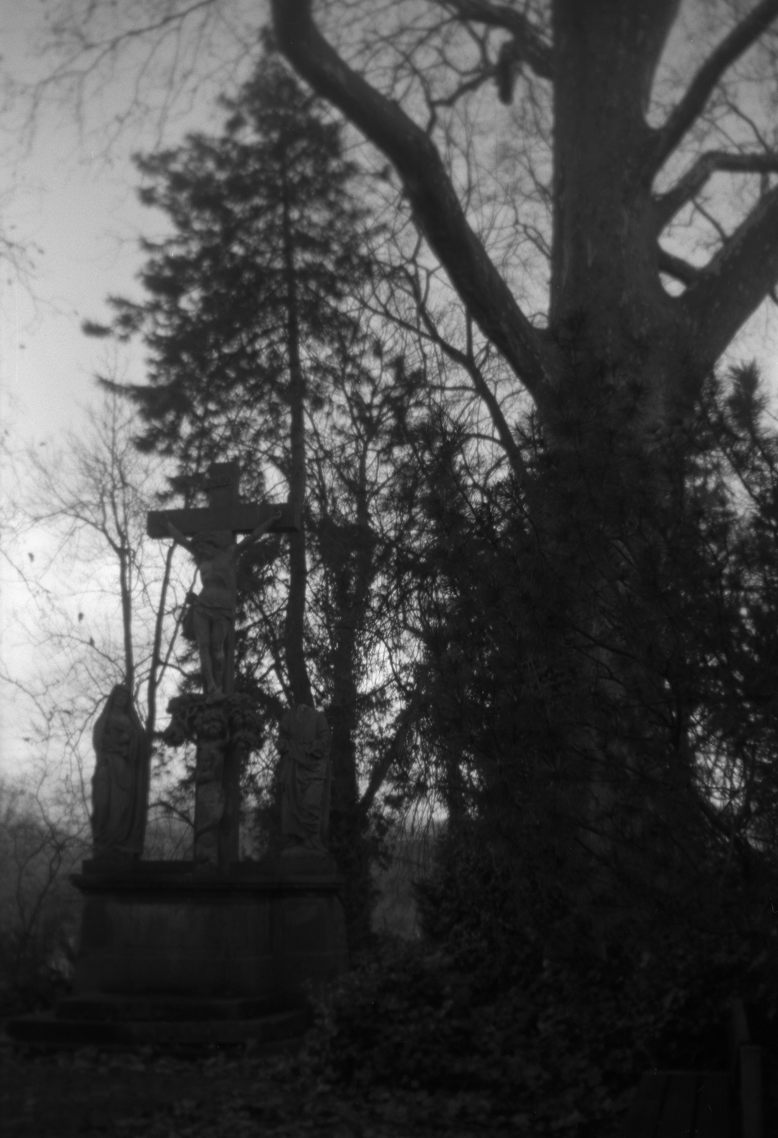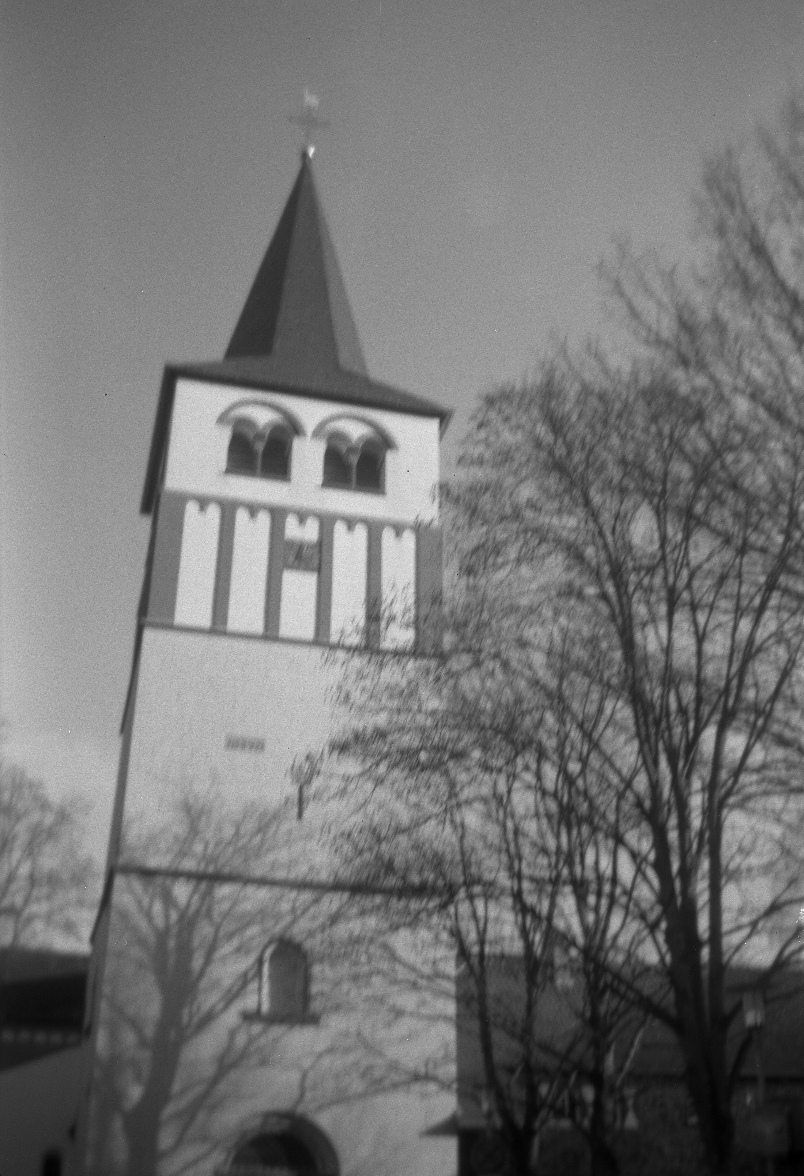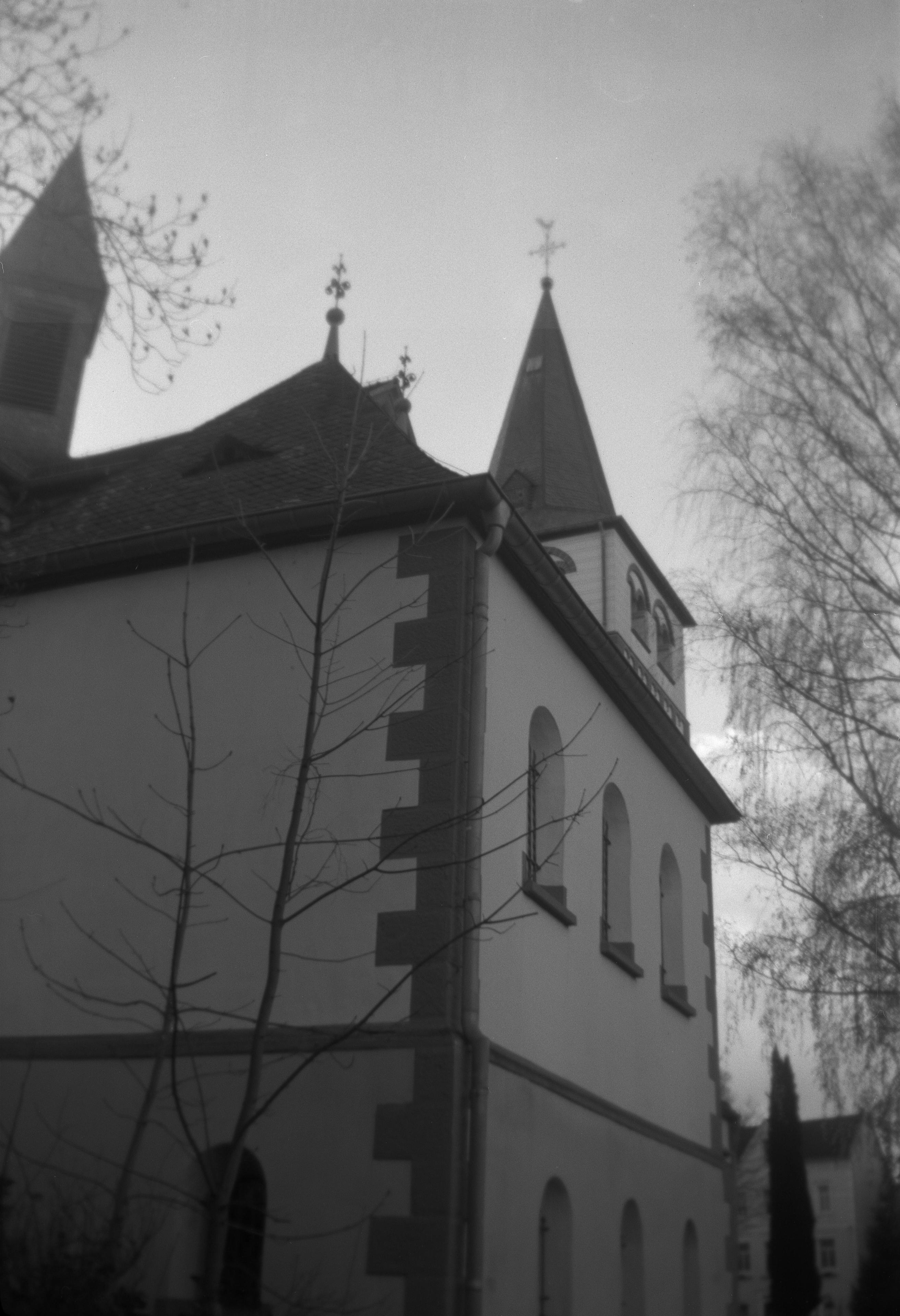 Das zweite Bild hingegen: Ziemlich krass, was so ein Weichzeichenfilter bei falscher Belichtung so alles ausmacht. Das Kreuz hinter der Kirche wirkt schon ziemlich krass, die Unschärfe rundherum, die durch die schlechte Linse (und ich glaube, dieses Exemplar einer Synchro Box ist auch leicht verstellt was die Schärfe angeht?) bewirkt wird, verpasst dem Bild eine gewisse Gruselstimmung, die man mit einer normalen Kamera gar nicht hin bekäme.