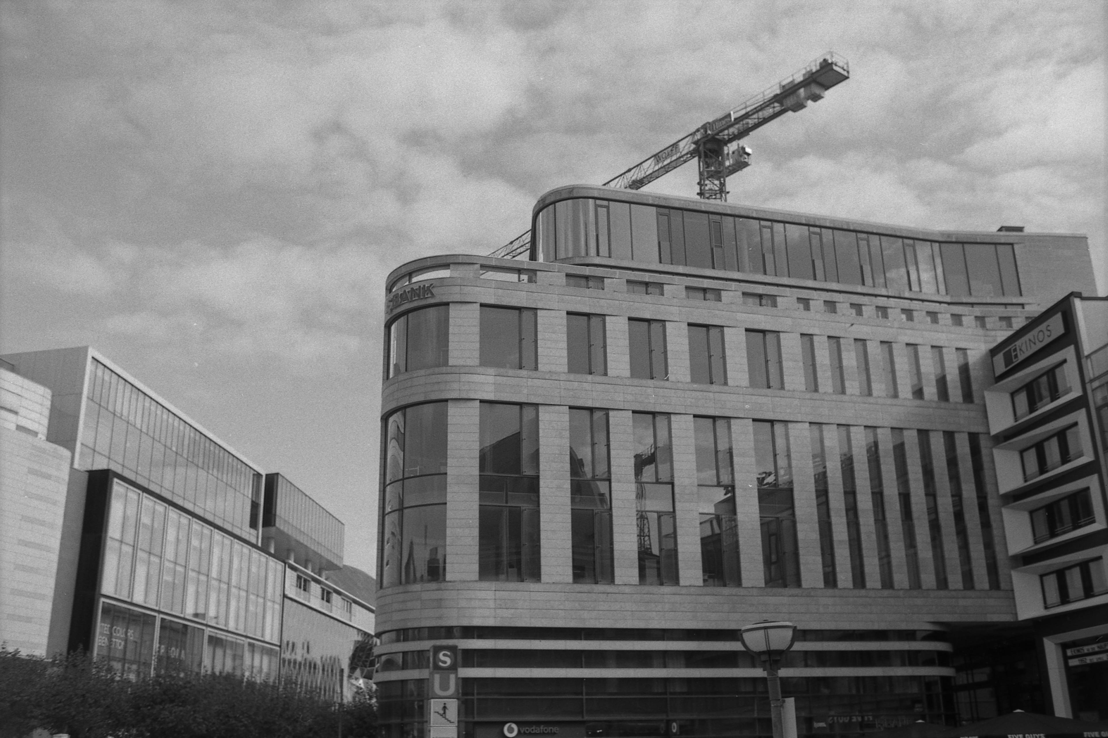Und dann, kurz vor dem Filmwechsel, noch ein bisschen Architektur auf dem letzten Bild. Da sind ja wirklich viele, viele hohe Hochhäuser in Frankfurt, was ein bisschen seltsam anmutet, denn die Stadt drumherum ist ja doch eigentlich eher flach und unscheinbar. (Ich weiß übrigens gar nicht, ob das tatsächlich das letzte Bild auf dem Film war, weiß ich gar nicht. Es kann sein, dass da noch ein 36- und 37stes Bild drauf waren, da aber Menschen mit portraitiert wurden. Ich hab das nach einem Jahr längst vergessen. Insofern eigentlich ja auch ganz schön, dass ich mir die Bilder endlich mal angucke