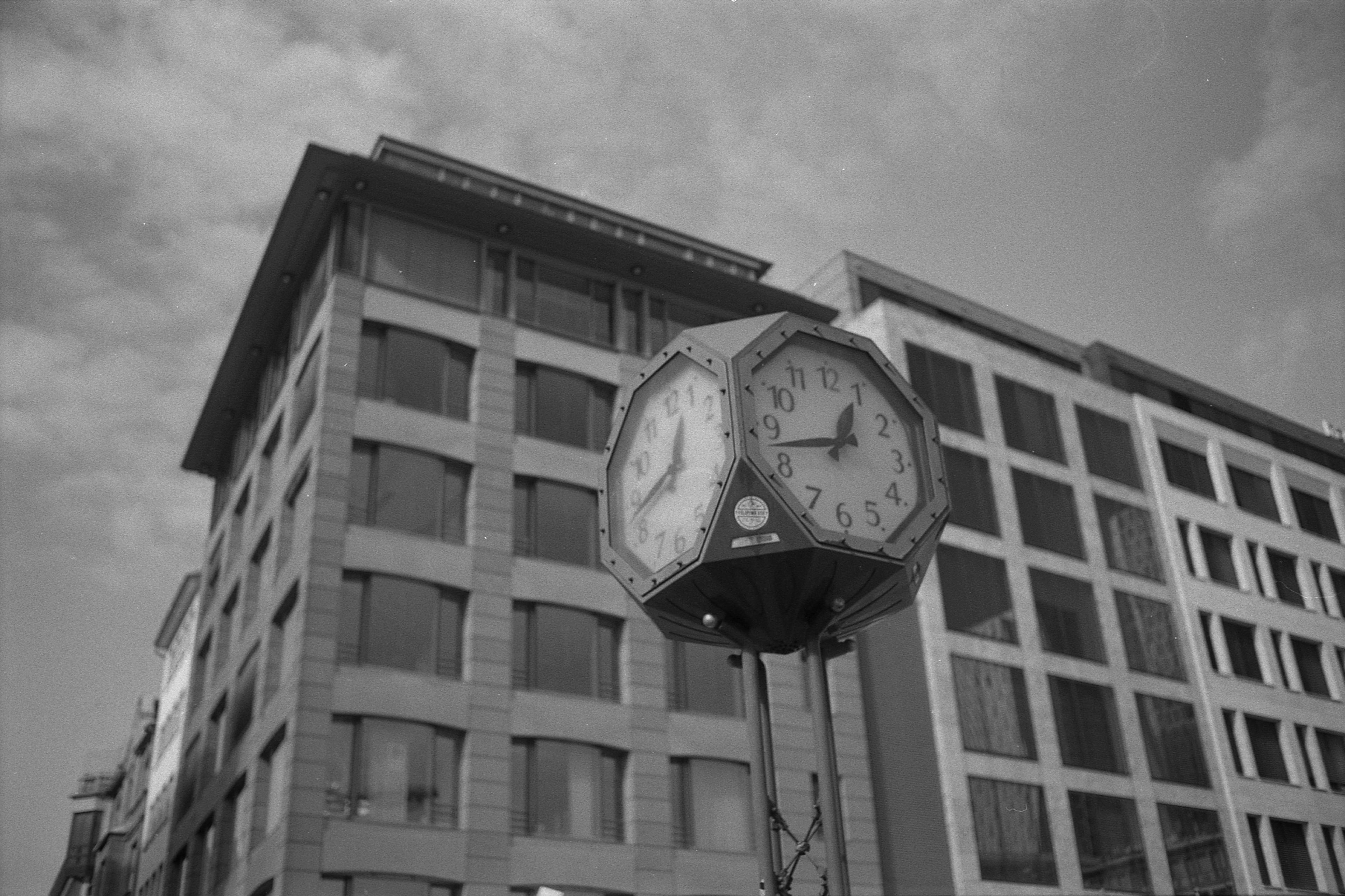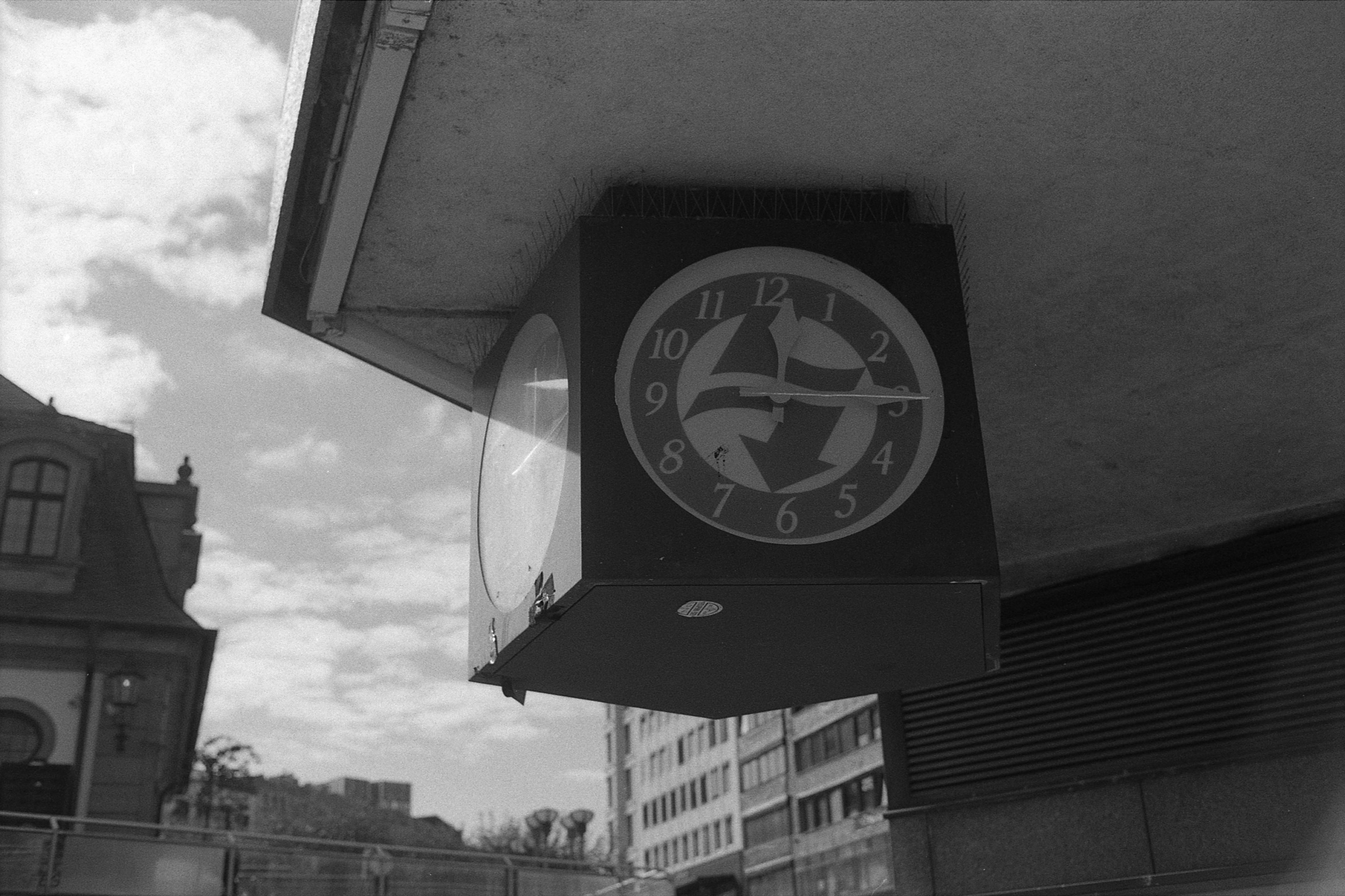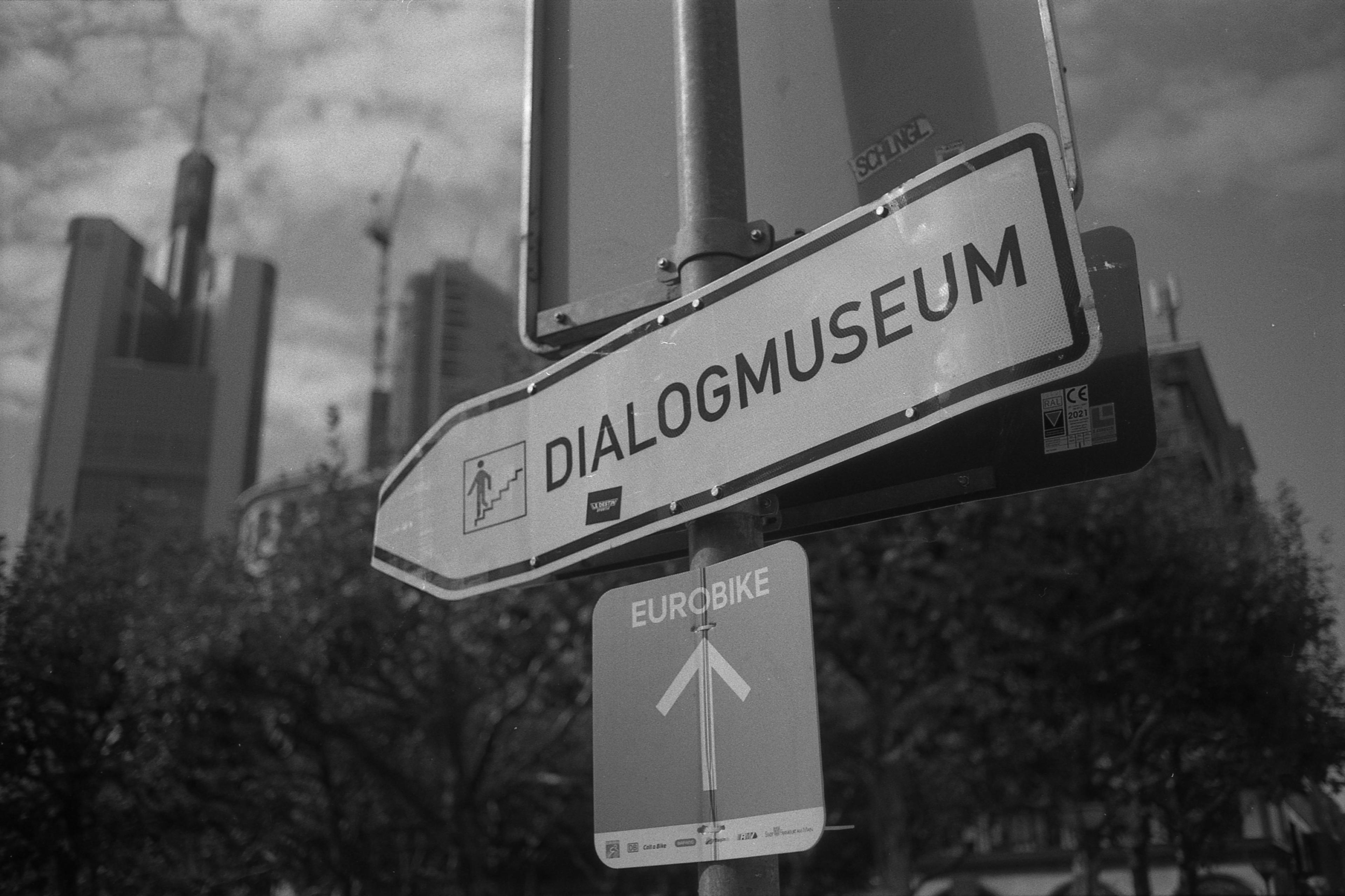 Was ist eigentlich ein Dialogmuseum? Das ist jedenfalls da. Und ja, es war hell: Das Bild ich weit offen bei f/2 entstanden und dafür brauchte ich dann tatsächlich mal die schnellste Zeit, die die Kamera kann! Na gut, Straßenschilder sind ja auch darauf ausgelegt, dass sie viel reflektieren. Und dann noch eine Uhr, nur um zu dokumentieren, wie viele Fotos ich in einer halben Stunde so machen kann!
